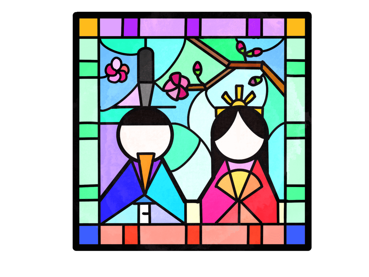 ステンドグラスで季節感のあるお雛様を制作する内容で、おだいり様はブルーまたはグリーン、おひな様はレッドまたはピンク、台座はベージュまたは濃紫から選べるそうです。色の組み合わせによって雰囲気が変わり、完成までの時間も楽しめそうですね。